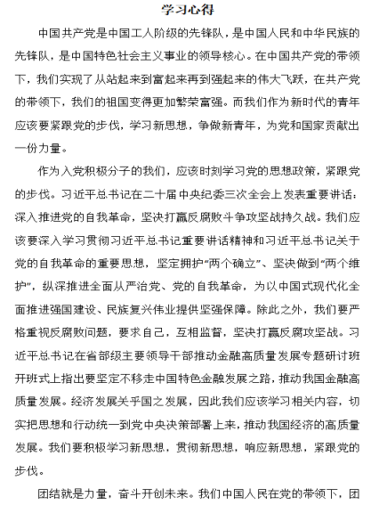 习近平指出,推动金融高质量发展、建设金融强国,要坚持法治和德治相结合,积极培育中国特色金融文化。作为青年员工,我们要深刻理解把握习近平总书记重要讲话的丰富内涵、精髓要义和实践要求,深刻领悟“两个确立”的决定性意义,坚决做到“两个维护”,切实努力钻研自身专业方向,为坚定不移走中国特色金融发展之路添砖加瓦。