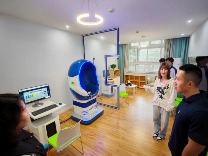 随后,陈龙一行参观了心理咨询室,江汉大学心理健康教育中心专职教师叶小舟随行讲解。据介绍,江汉大学在心理中心建设上持续发力,经过多年用心深耕面貌焕然一新。目前心理中心已建成心理咨询室、心理测评室、情绪调节室等多个功能区,信息化程度较高,并创新推出虚拟体验室,实现信息化技术运用与心理咨询的有机融合。江汉大学教育公司党委副书记李莉表示,心理中心自建成以来,公司接待心理咨询及员工活动人次同比实现倍增。
