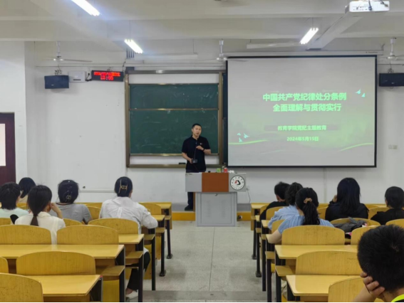 为扎实开展党纪学习教育,切实增强公司全体党员的纪律意识,始终做忠诚干净担当的共产党人,坚持立德树人,促进公司办学质量提升。教育公司党总支部于5月15日下午在5栋125教室开展《党纪学习教育》主题党课。会议由党总支部书记陈龙主持,beats365全体党员同志参与本次学习。