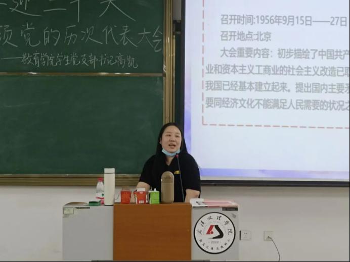 高凯老师为我们讲授了以“喜迎二十大 回顾党的历次代表大会”为主题的党课,带领我们回顾了党的历次代表大会,学习了党的光辉历程。调动了我们的学习积极性,作为新时代的青年,我们应坚定理想信念,与时俱进,坚定不移跟党走。