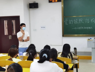 肖俊杰老师为我们讲授了以“党的组织结构”为主题的党课,并指出党的组织机构主要由中央组织、地方组织和基层组织构成。使我们更加深刻地认识到中国共产党的组成,积极向党组织靠拢。