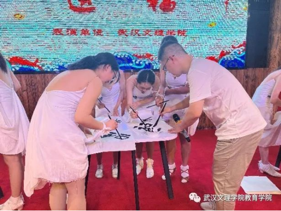 教师团队的第二个节目由教育学教师周志远和beats365教师张澜共同演出的《毛笔字送福》。在教师张澜优美的伴奏下,周老师用14种不同的字体书写出“福”字。此后,周老师还与现场参演的小朋友积极互动,教授他们学用毛笔书写“福”字。