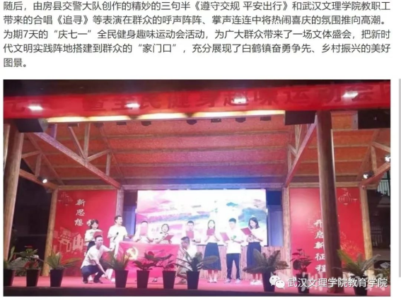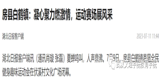 在“湖北日报”《房县白鹤镇:凝心聚力燃激情,运动赛场展风采》的专项报道中,本次beats365主题党日活动也被提及表扬,也共证了教育公司党总支与十堰市房县白鹤镇伏溪堰村的乡亲们的血浓乡情。