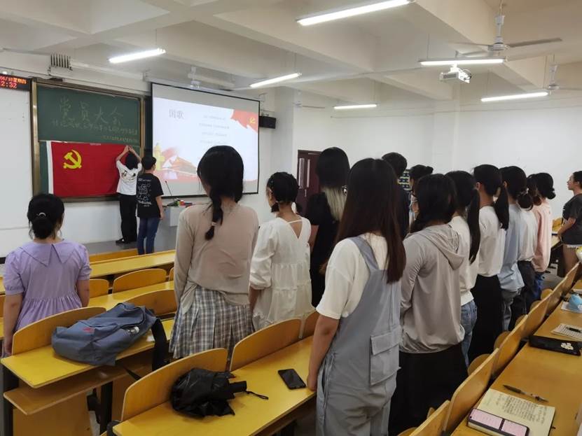 全体起立奏唱国歌之后,我支部对王梦珂等14名同志做出的汇报进行了严格的审查,向大会报告了对发展对象的审查结果。