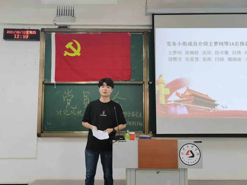 随后王梦珂等14名同志按顺序向支部大会宣读入党志愿书,汇报了自己对党的认识、入党动机、本人履历、现实表现。14名同志汇报完毕后,全体党员采用无记名投票方式进行表决。