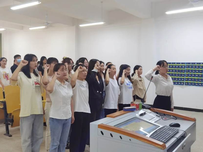 王梦珂等14位同志庄严宣誓,全体党员重温入党誓词,铮铮誓言,字字铿锵,宣誓了支部党员为党奋斗终生的赤诚初心。