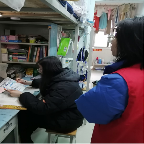 陈龙老师和高凯老师深入员工寝室走访,耐心地为同学们讲解甲流相关知识,关心同学们生活学习情况,并温馨提醒同学们注意保暖,保持寝室干净卫生,身体出现异常第一时间上报给辅导员。