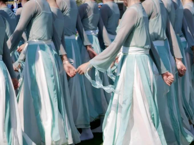 随着音乐响起,无数双灵动的眼眸,柔美又有力量的舞姿,是最美的青春回应。我们用舞步丈量初心,用行动谱写爱党情怀。手中丝带随风飘扬,将情怀融进动作之中,整齐划一,将爱国情怀展现在大众眼中。