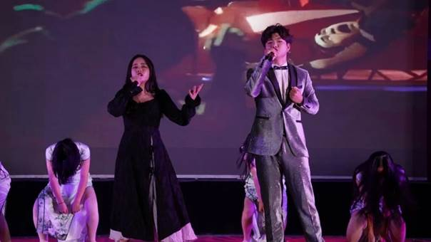 当熟悉的诗句被唱作歌曲,翩跹舞姿与男女对唱,歌伴舞《琵琶行》将全场师生带入荻花丛边,移船相近邀相见,只听歌声如大珠小珠落玉盘。