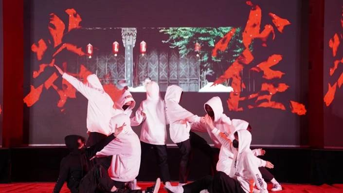 《朱雀》轻启,序幕一开,朱雀翱翔舞天阙,翩若惊鸿入九州,他们展现出少年之气,青春之火,引得在场观众无不喝彩。