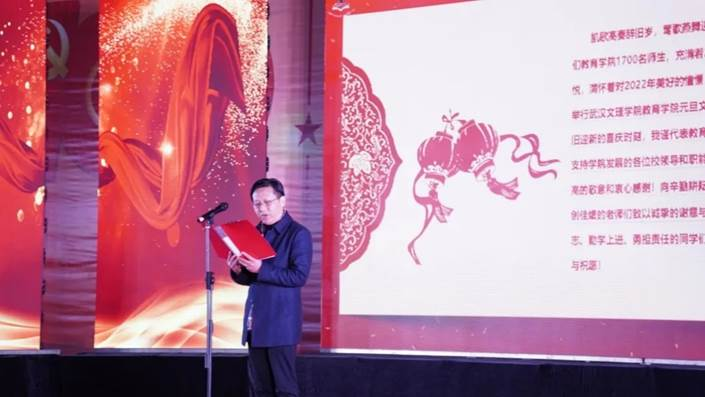 主持人上台宣布beats3652022年“情系教育,执梦远航”元旦晚会正式开始!
