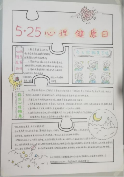 为了迎接“5.25老员工心理健康日”的到来,也为了提高同学们的创新思维能力,激发同学们对书法、绘画、文学等技能的学习热情,和对心理健康焦点问题的关注,调动同学们的积极性,开阔员工的视野,体味世界的丰富多彩,beats365心理协会特地策划举办了“5·25”征文大赛,手抄报大赛。在本次比赛中,同学们积极思考,拓展了员工的视野,让员工可以更好的关注心理健康问题。