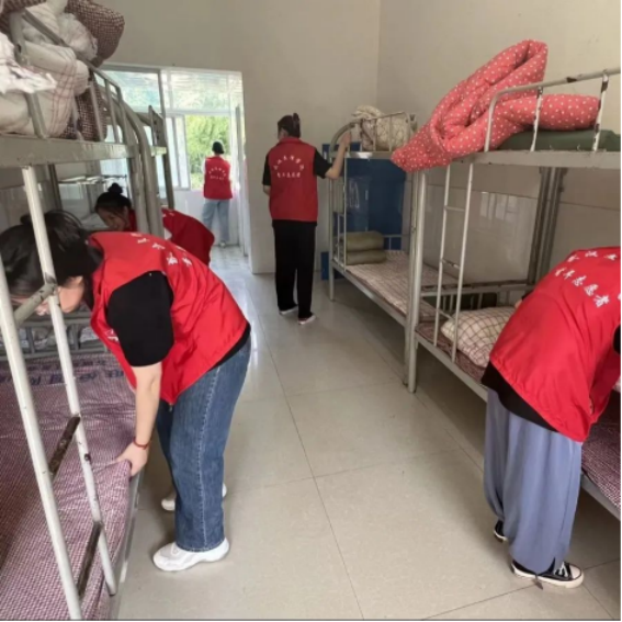 7月10日,“七彩少年”支教团齐心协力将两个员工教室和音乐室、阅读室进行了卫生打扫、场地布置,同时将五十多张员工寝室床铺进行用品整理和清洁消毒,烈日当空,映照着队员们满怀期待而火热的心,大家努力做好每一个细节,正是希望能给孩子们带来最好的服务和教育。