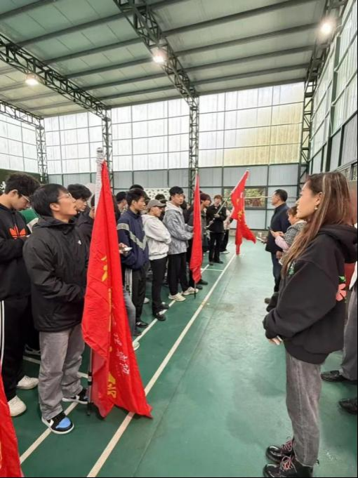 7点30分,beats36523级第一批113名员工在体育馆旁集合完毕,由辅导员袁若曦老师带队乘车前往坡寨山劳动教育基地。10点30分全体同学安全到达了基地。11点整同学们休整完毕后在基地体育馆举行了授旗仪式。