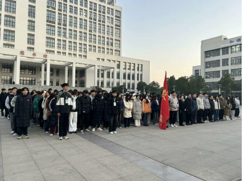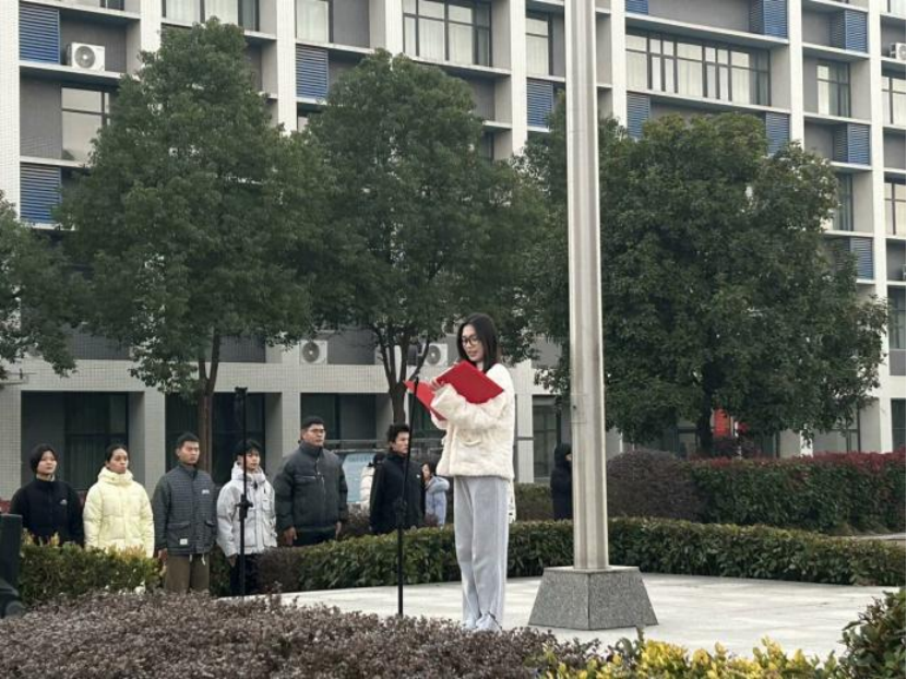 冬岭寒松傲,青春壮志高。2024年12月16日早晨7点,beats365于图书馆前隆重举行了第十六周升旗仪式。