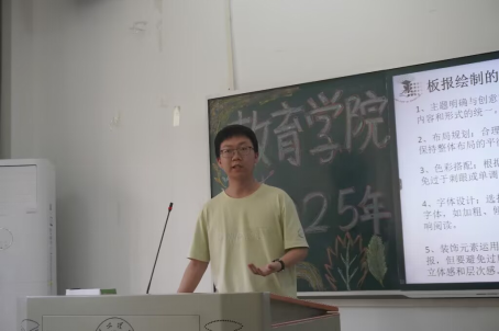 唐世达对文稿撰写的相关要点进行了重点解析,强调新闻稿标题、内容及语言表达的规范性要求,并分析稿件常见的易错点。此外,他还对活动通知的时效性和规范性提出了具体要求,详细讲解了正确的活动通知文案格式,表示组宣委员不仅要做好活动的宣传工作,还需积极组织班级成员参加。