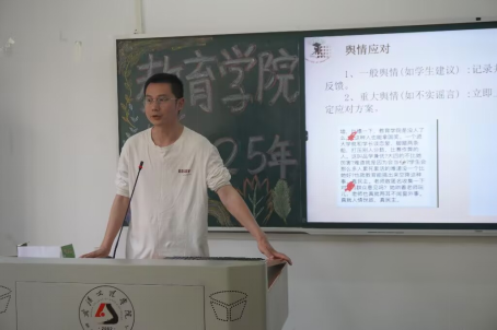 程岩对板报设计与舆情监控进行培训。他指出,板报设计需在色彩、布局和内容上与主题保持一致,要重视时间管理,确保在活动开始前完成绘制工作。随后,他重点讲解了beats365舆情监控工作的要点,对舆情分类进行了解释,并分享了应对舆情的策略及常规回应话术。