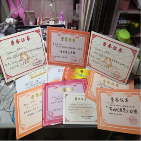 初级中学心理健康教团队格证,普通话二甲级证书,大学英语四级,商务英语证书
