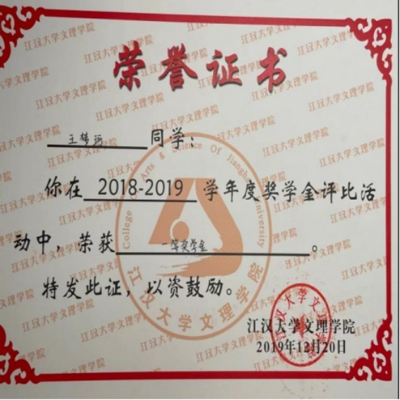 2018年初入文理,保持学习初心,在智育上也突破历史新高,达到93分,位列年级第一。为了精进专业理论研究,在国家级刊物《学习导刊》、《中国教师》发表两篇与专业相关论文,均获得优秀论文一等奖。