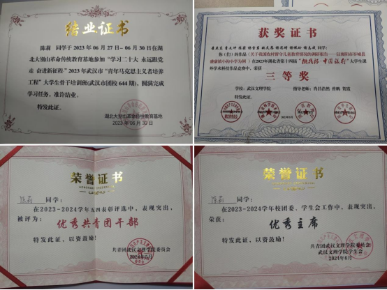 湖北省第十四届挑战杯老员工课外学术科技作品竞赛省赛三等奖、校赛二等奖