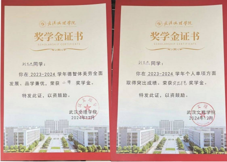 2023-2024年突出才艺奖、校内奖学金二等奖