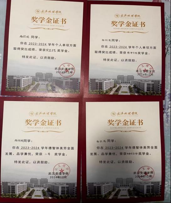 平时在作风上,她严谨求实,勤奋好学。在学习上,她始终保持高度的专注与热情,成绩在班级中名列前茅,多次获得奖学金,包括两次国家励志奖学金、一次二等奖学金、两次三等奖学金,以及两次优秀班干部奖学金。同时,她担任班级的学习委员,积极配合任课老师的教学工作,主动承担班级事务,关心同学,乐于助人,多次荣获精神文明奖学金。