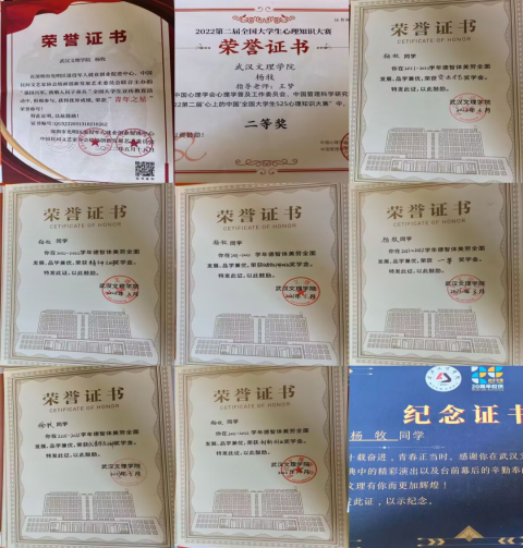 2021-2022获得一等奖学金、优秀员工干部标兵、突出才艺奖、创新创业奖、精神文明奖