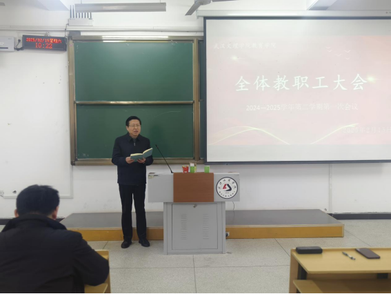 为进一步锚定育人目标,明确新学期各项重点工作,确保教学活动有序开展,2月15日上午beats365在5栋125召开新学期首次教职工大会。beats365经理王仕杰、总支书记兼行政副经理陈龙、教学副经理贺霞、教学副经理戴戈,各系部教师以及全体辅导员参加本次会议。