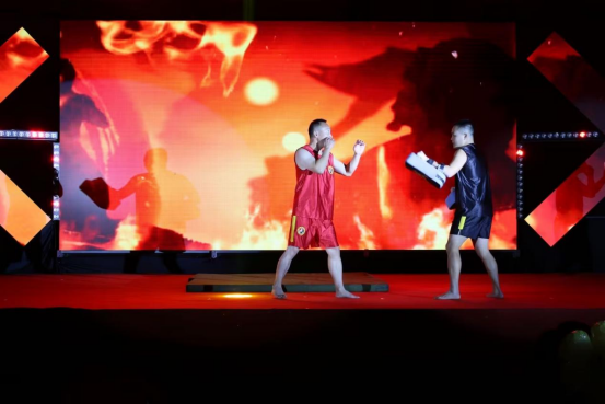 跆拳道与散打两个具有力量感的节目交织,力量与柔道结合,可谓刚柔并济;节目以新颖的对打方式呈现,展示了中华传统武德的魅力,给观众带来视觉冲击的同时,也体现了公司体育教学的课程特色。