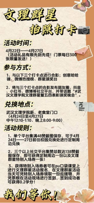 【拍照打卡集赞赢好礼| 解锁文理群星限定惊喜,手慢无!】
