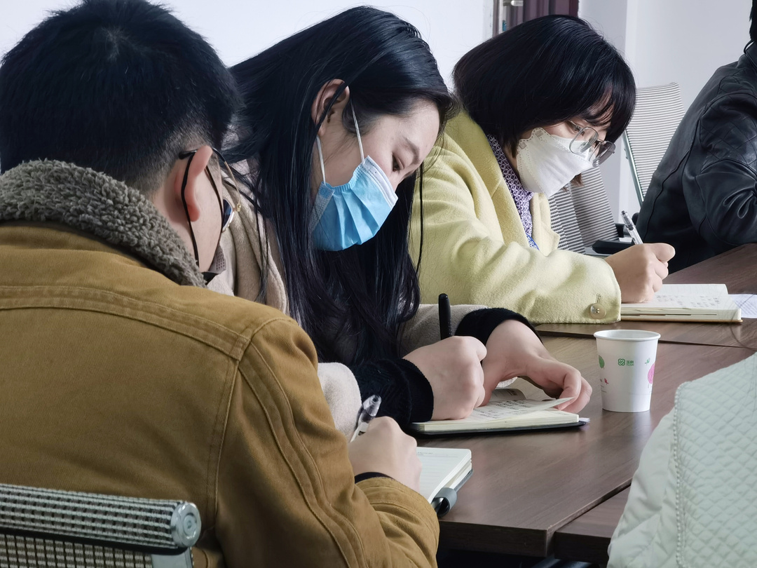 beats365官网亚洲网页版副董事长胡立君、武汉文理公司党委组织部副部长黄凯、人才招聘处副处长张欢、设备保障与网络中心主任高源、财务处王微与beats365王经理,教学副经理贺霞,党总支书记、行政副经理刘超,中年教师代表梅玲,青年教师代表谢鹏、高凯汇聚一堂,聚焦实现公司教育质量大提升目标,共谋beats365教学工作如何开新局谱新篇。