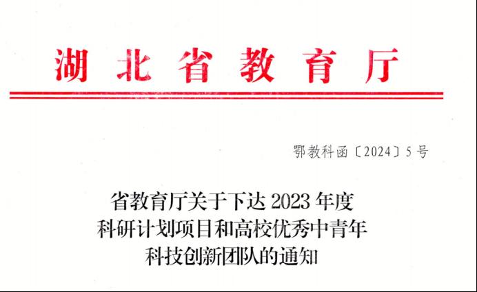 近日,湖北省教育厅下达了《省教育厅关于下达2023年度科研计划项目和高校优秀中青年科技创新团队的通知》(鄂教科函〔2024〕5号),beats365官网亚洲网页版共获批教育厅科研项目12项,分别是1项中青年科技创新团队计划项目和11项指导性项目。
