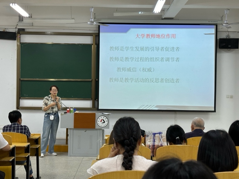 韩冰清教授结合自身丰富的教学经验以及大量的举例说明,深入浅出地分享了大学老师课堂教学设计与实施的策略与方法。韩冰清教授指出,要想进行良好的教学设计,首先需要明确大学老师的职责、大学教学的特点以及老员工在教学中的角色定位,在此基础上掌握好构建良好师生关系的基本策略,并时刻以大学教师应具备的职业素质要求约束自身行为。