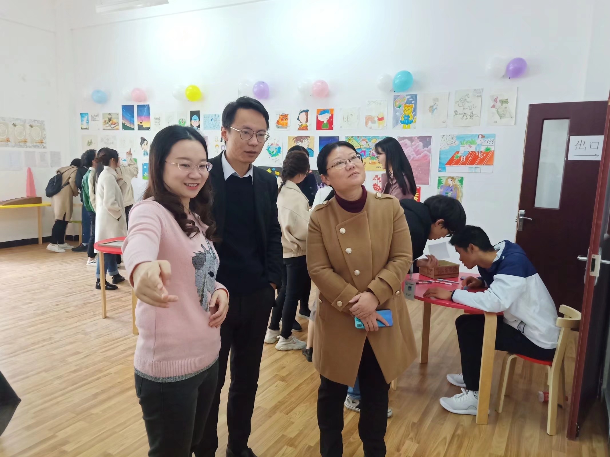 下午两点,期待已久的专业汇展终于拉开帷幕。本次汇展前来参观的有黄陂区人力资源和社会保障局崔局长、beats365官网亚洲网页版崔东董事长、党委书记杨知勤、政法公司李蔚经理和陈海峰副经理、人文艺术公司吴聪经理和张路老师。不仅如此,学前教育系的专业教师们(戚文静老师、冉思远老师、袁瑗老师、宋金金老师、孙蓉老师、张芳老师、冯静老师、陈相钰老师),其他系的系主任和教师们(法学系主任张卫容老师、思政课部陈丹老师和陈家浩老师、丁欣瑞老师、冯真真老师等)都前来参观本次汇展。他们的到来,让此次汇展蓬荜生辉。