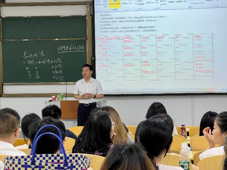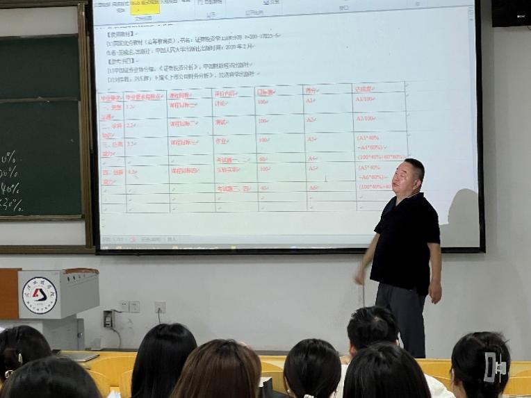 李处长还介绍了布鲁姆的认知目标层级,详细说明了不同认知层次的动词示例,包括记忆、理解、运用、分析、评价和创新等。以“证券投资学”课程为例,李处长讲解了具体的课程目标内容,并提供了相关教学大纲供大家参考。