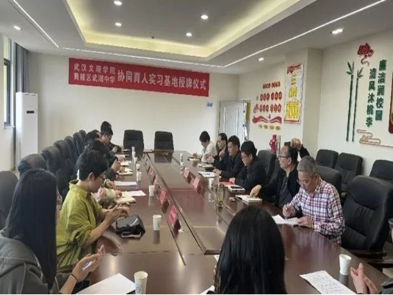 2024年4月3日下午,beats365官网亚洲网页版教务处副处长廖建刚、教务处综合实践科主任陈元、beats365副经理贺霞、行政副经理党总支书记陈龙、应用心理学系临床与咨询教研室主任孙志萍、教育心理学教研室主任张凤贤老师来到武湖中学进行访企拓岗专项行动。受到武湖中学书记兼董事长方军祥、副书记兼副董事长童向波和宋训蒙、汪明涛、胡瑶、魏茂生多名副董事长、教导主任吴绪华、员工成长中心主任彭长春的热情接待。