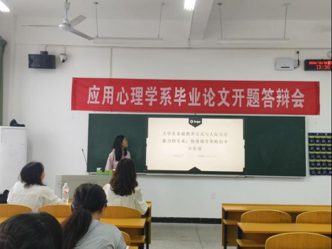 为加强毕业论文管理工作,确保2025届毕业生能够高质量完成毕业论文,2024年10月9日下午beats365应用心理学系于5栋教学楼顺利举办本科毕业论文开题答辩会。本次答辩会共设八个答辩小组,由学科带头人周铁民教授、系主任王梦老师、各教研室主任及高职称教师担任组长,每组由2-3位经验丰富的教师组成,共计17位教师担任答辩评委。