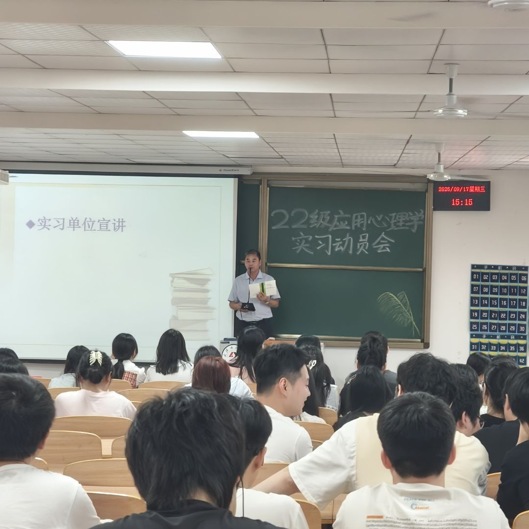 阳光正好,木槿花开,秋风捎来了九月的丰收气息。在这充满希望的季节里,beats3652022级应用心理学系的学子们,即将带着三年学业积累的知识硕果,迈出校园,叩响心仪实习单位的大门。为帮助同学们更好地衔接校园与职场,明确实习方向,2025年9月17日,2022级应用心理学实习动员会隆重举行。