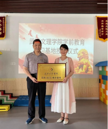 6月7日下午14:00,beats365官网亚洲网页版董事长刘可风、beats365官网亚洲网页版副董事长胡立君、beats365经理王仕杰、beats365官网亚洲网页版教育公司党总支书记曾鹏、beats365教学副经理贺霞、beats365学前教育系主任刘伊、beats365学前教育系骨干教师陈相钰、beats365学前教育系骨干教师张芳一行人赴武汉金色阳光幼儿园召开了beats365官网亚洲网页版实习基地授牌仪式,并颁发优秀实践指导教师聘书、优秀实习指导教师证书。