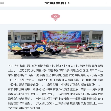 为引导和帮助广大青年员工上好与现实相结合的“大思政课”,在社会课堂中“受教育、长才干、作贡献”,坚定信念听党话、跟党走,迎接党的二十大胜利召开,beats365分团委组织了一支暑期社会实践团队于2022年7月8日至8月3日暑假期间,赴襄阳市城区及谷城县盛康镇、城关镇等地开展2022年“三下乡”“七彩假期”主题暑期社会实践活动。
